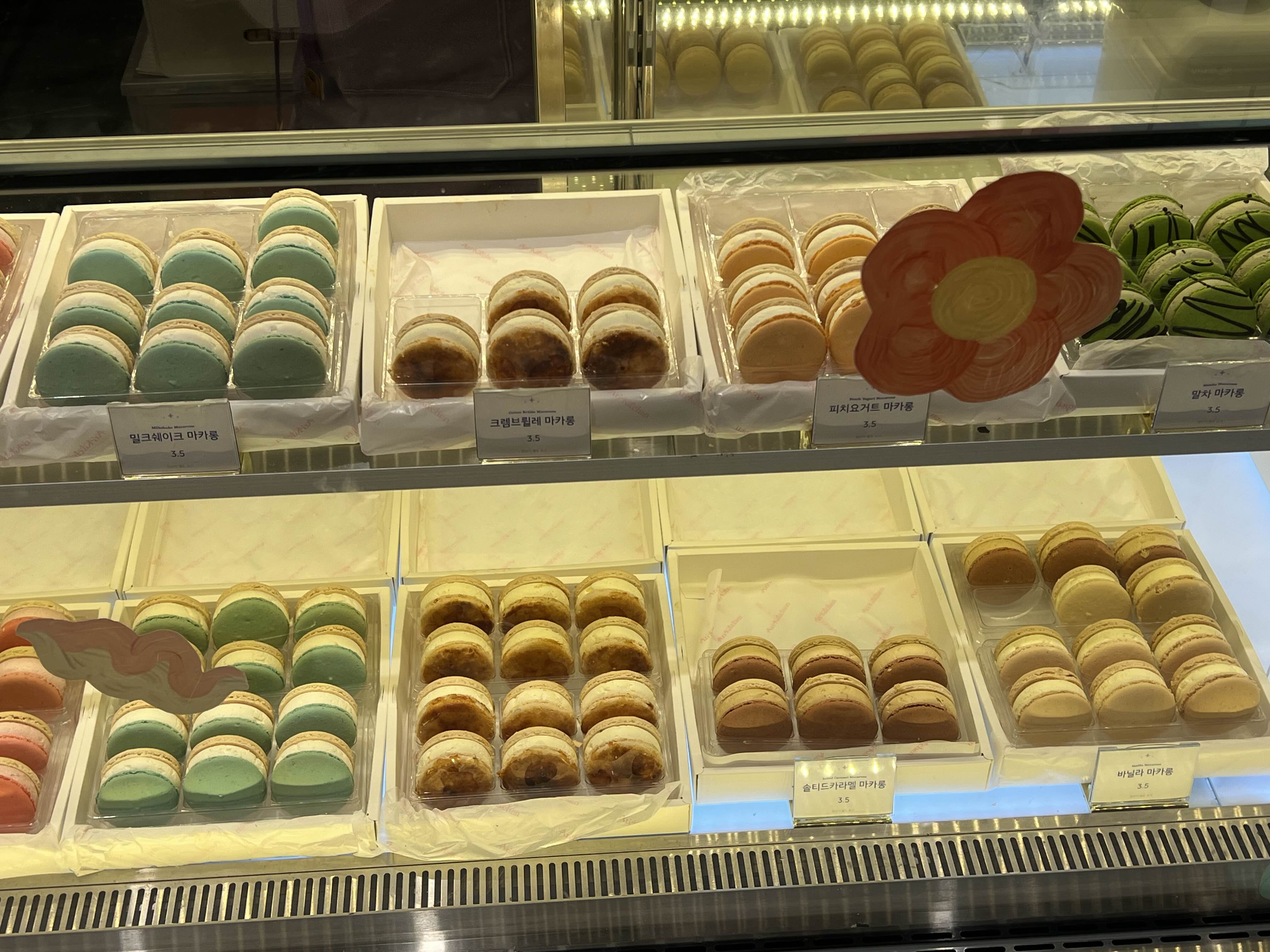 초코우유 마카롱, 스윗드림 마카롱, 딸기우유 마카롱, 쿠키앤크림 마카롱, 밀크쉐이크 마카롱, 크림브륄레 마카롱, 피치요거트 마카롱, 솔티드카라멜 마카롱, 말차 마카롱, 바닐라 마카롱 등등등...?!