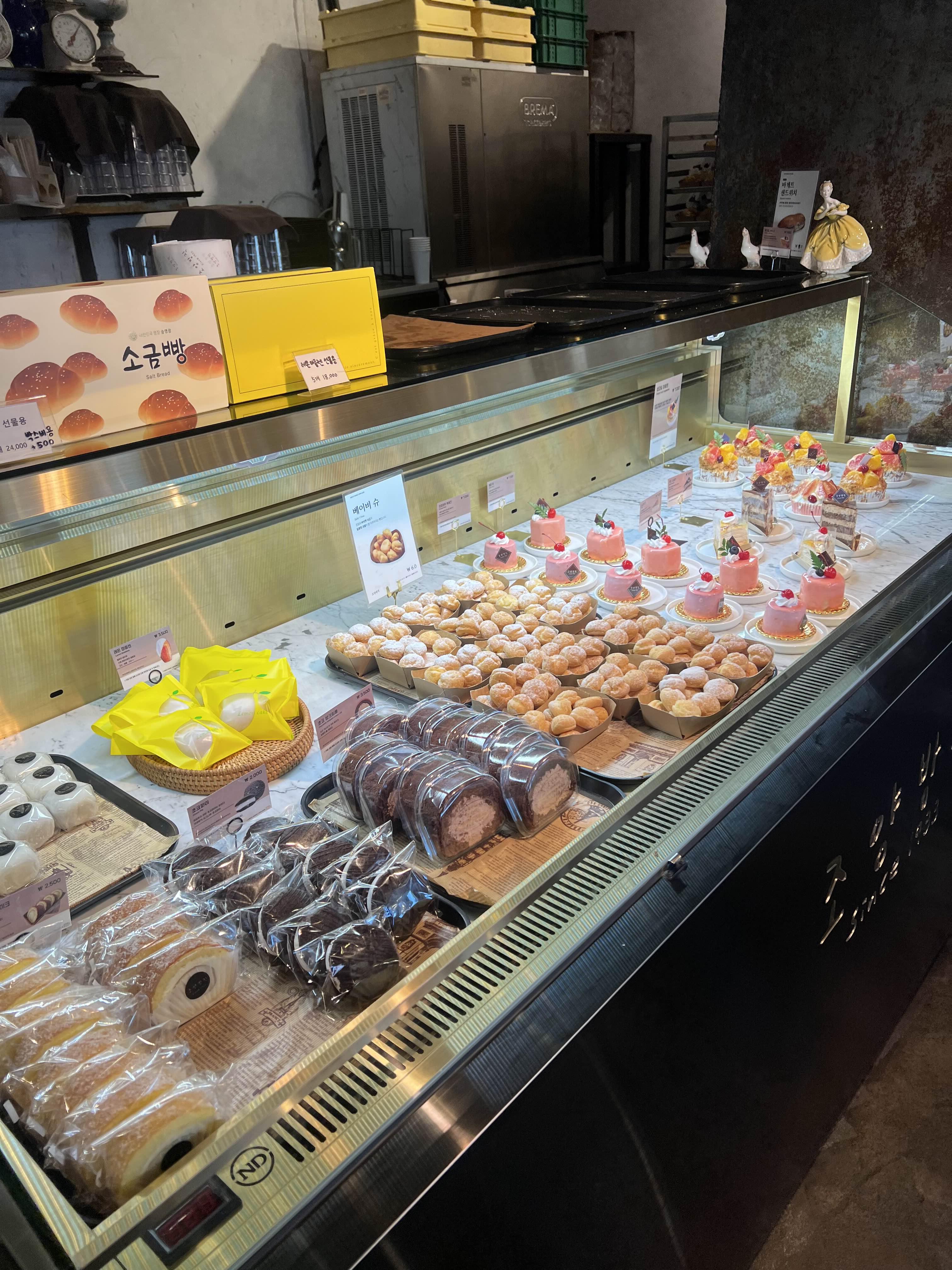 소금빵도 팔고, 소금빵, 까눌레, 앙버터, 케이크 등등 다양했다.